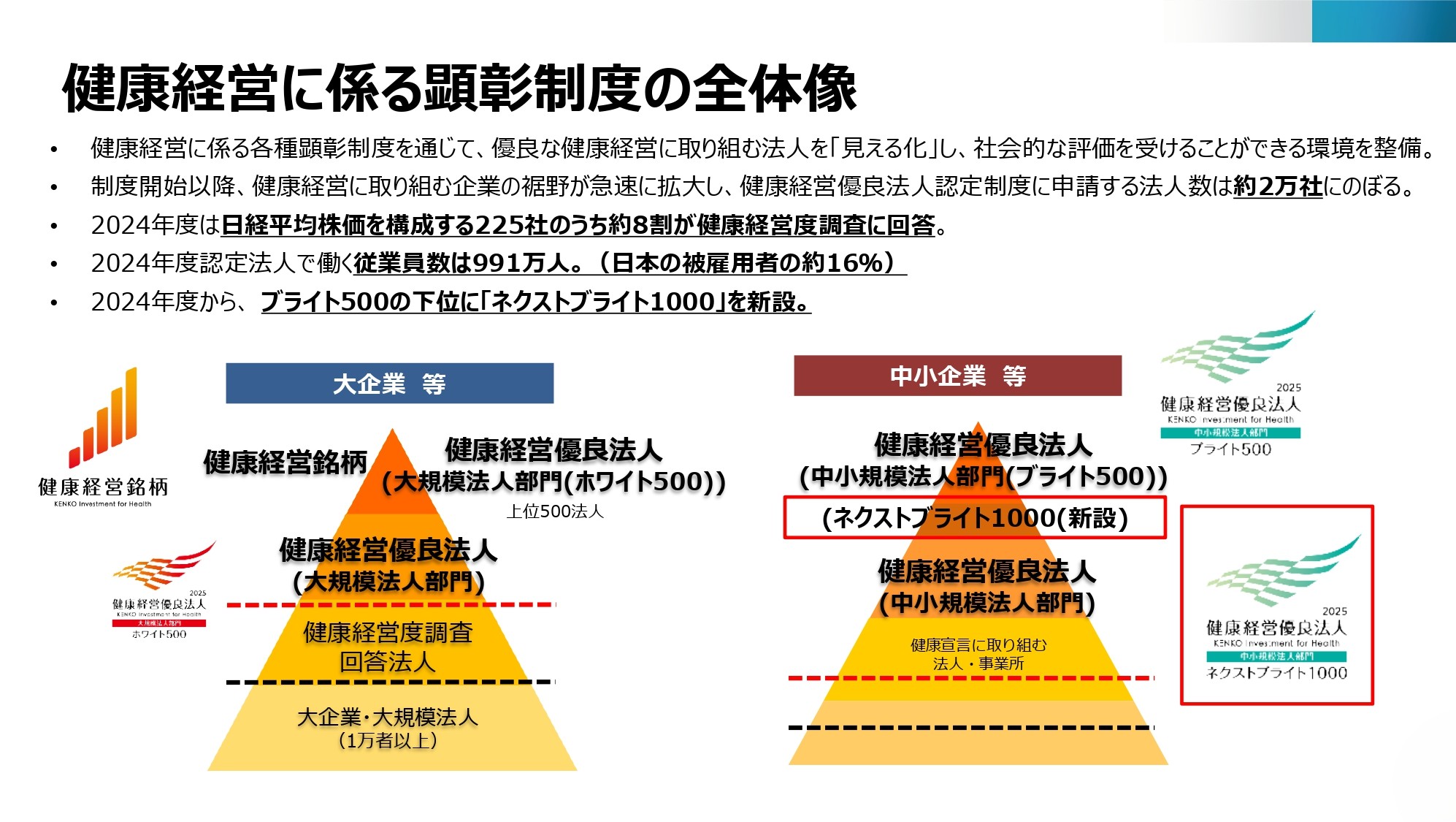 国は、健康経営を促進する一環として、2016年度から健康経営優良法人認定制度を実施しています。