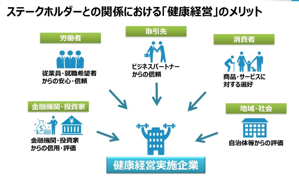 また、健康経営は従業員の健康に気を遣う優しい企業というイメージを発信でき、企業のイメージアップにもつながります。
